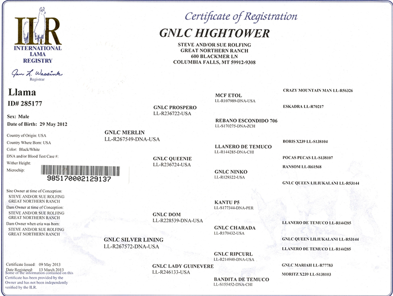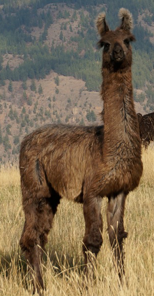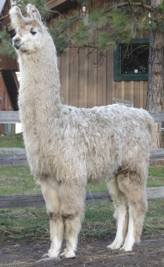 Hightower is simply a majestic llama. He stands 48” at the withers, 78” at the poll, and at well over 400# he is just plain big. His ideal proportion, sturdy bone, stately presence and athletic movement make him an absolutely complete male.